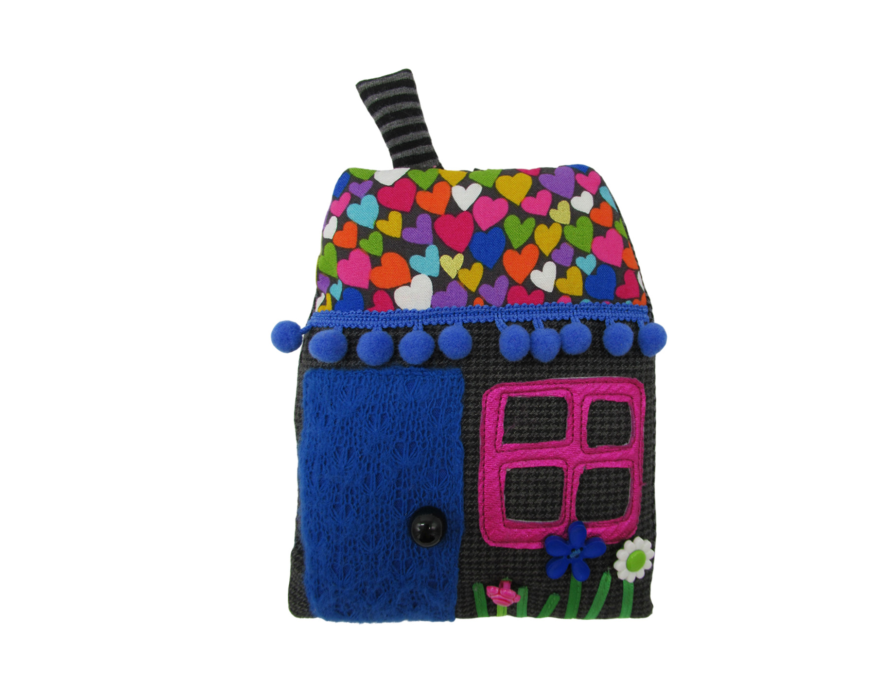 Maison en tissus, à poser ou à suspendre, 15X13 cm, porte-bonheur, pièce unique